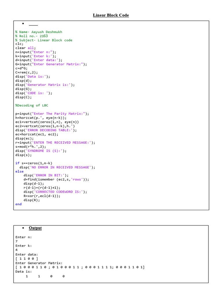 % Subject- Linear Block code