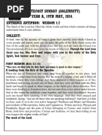 Reading: Jn 14:1-21 Memorising: Rev 2:7