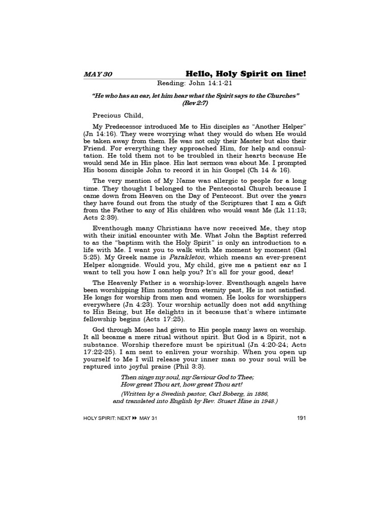 Spirit. How much He enlivens our worship! Without His help, we cannot