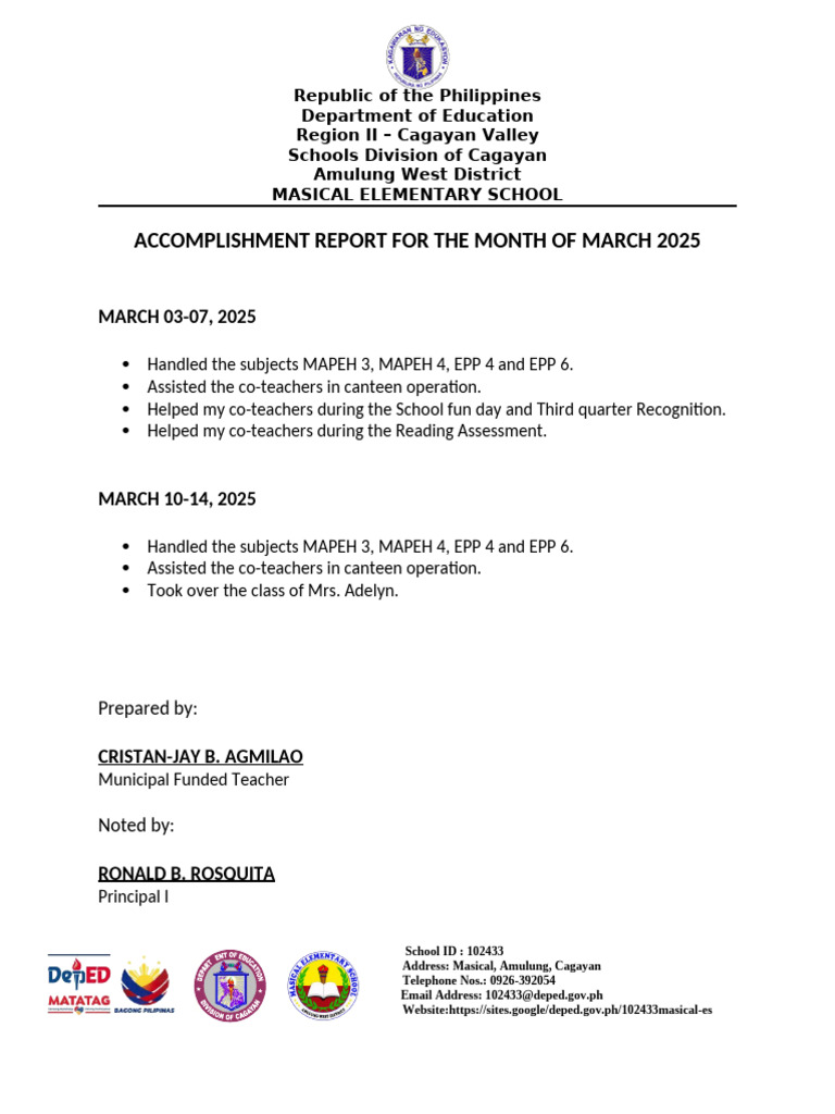 ACCOMPLISHMENT REPORT FOR THE MONTH OF MARCH 2025