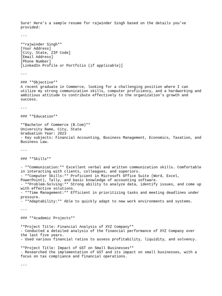 - **Languages:** Fluent in English, Hindi, and Punjabi.
