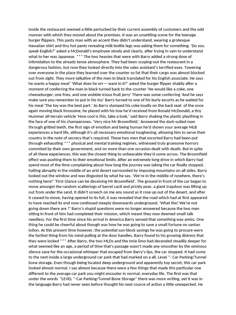 his meal ‘The toy was the best part.’ As Barry slumped his coke loudly on the back seat of the once