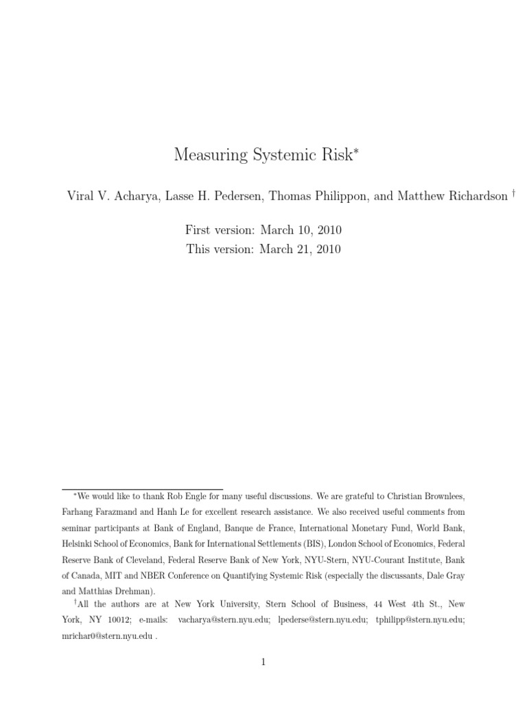 concern. We believe that the lack of an adequate systemic risk measure is at the root of
