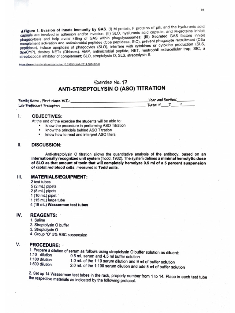 ANTI-STREPTOLYSIN O (ASO) TITRATION