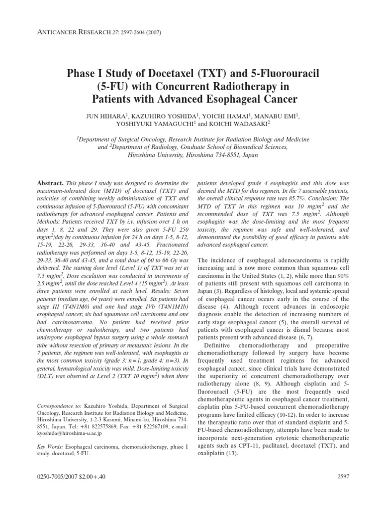 2002. [http://www.esophagus.jp/pdf_files/CREC_JPN_3rd.pdf] 18 Choy H: Combining taxanes with radiation for solid tumors. Int