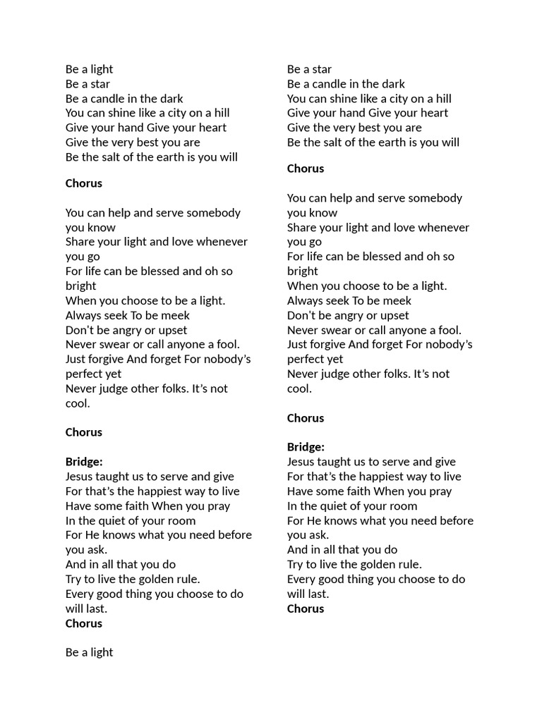 When you choose to be a light. Always seek To be meek