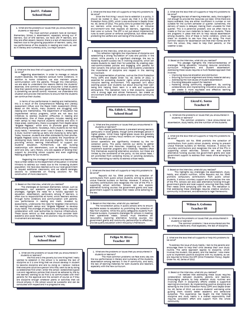 to request additional classrooms, and we attend barangay 3. Based on the interview, what did you realized?