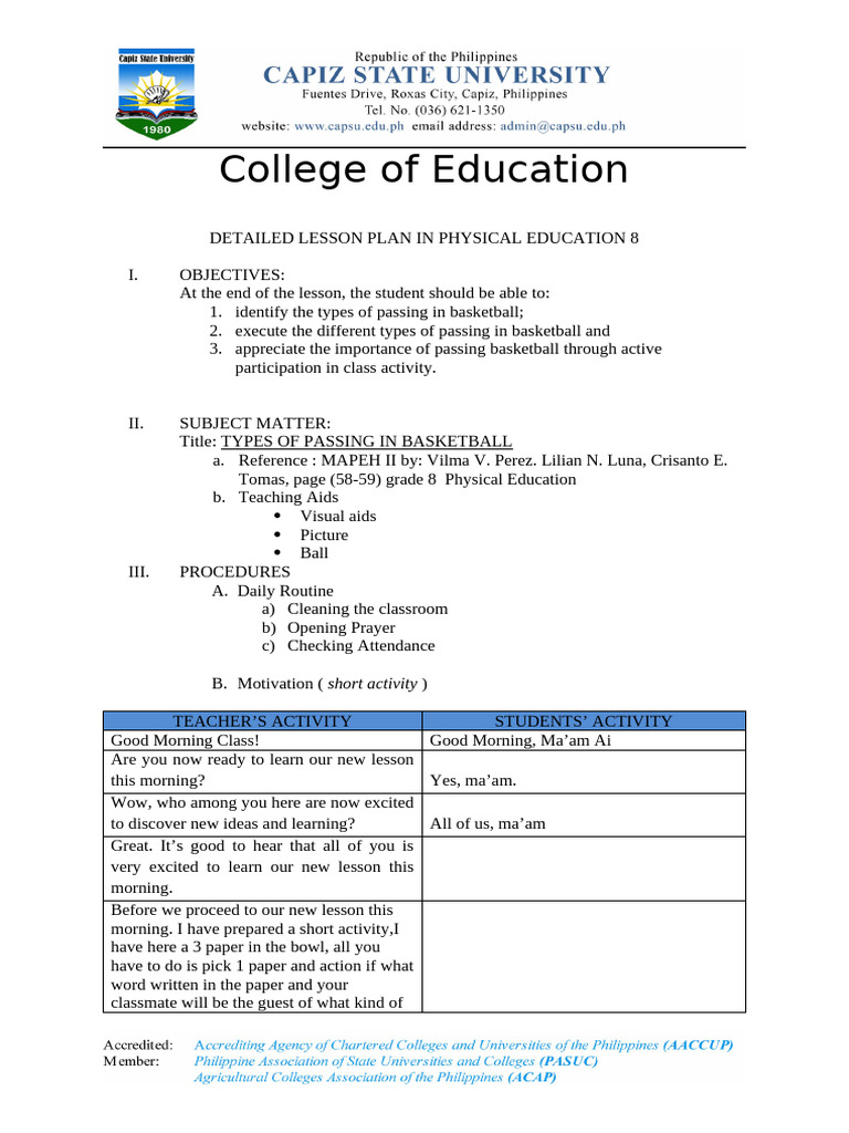 DETAILED LESSON PLAN IN PHYSICAL EDUCATION 8