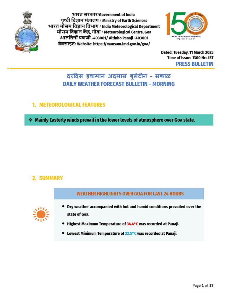 GOA ON 11-03-2025 FOR THE PAST 24 HRS: