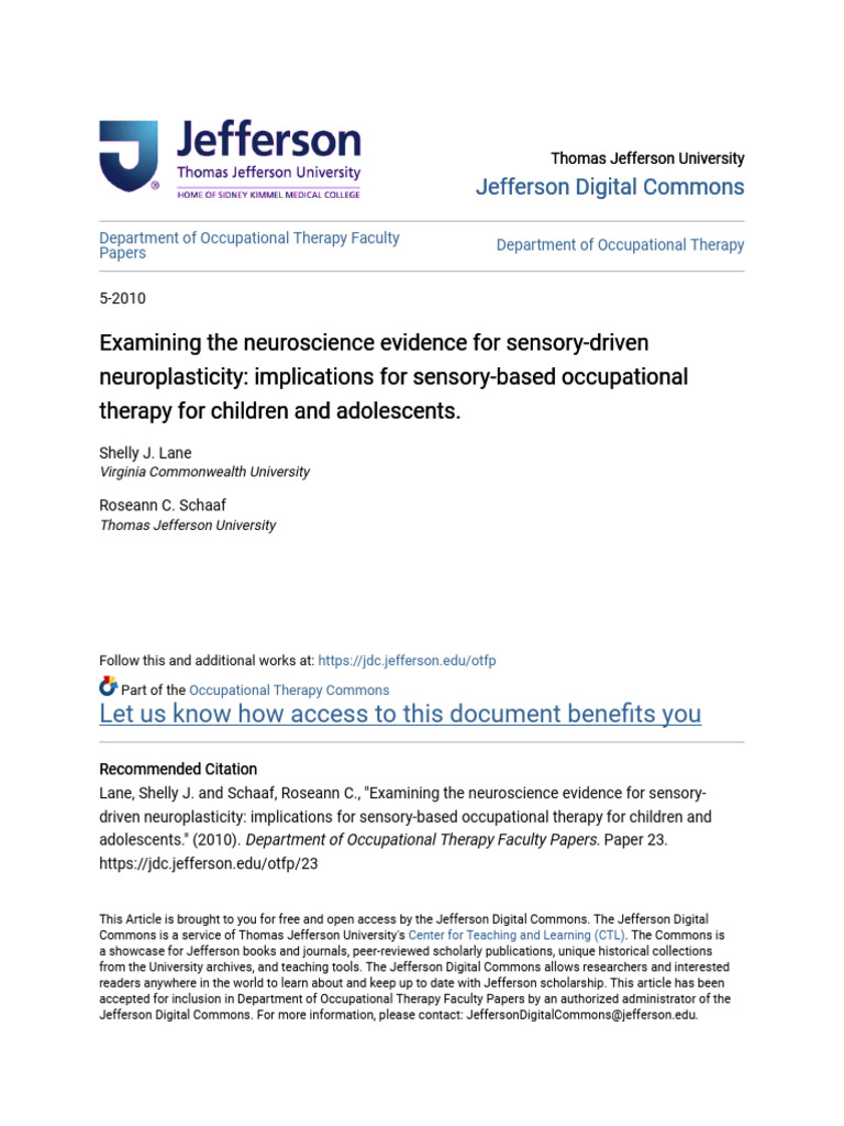 Lane, Shelly J. and Schaaf, Roseann C., "Examining the neuroscience evidence for sensory-