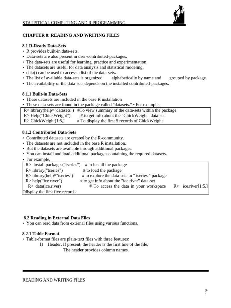 STATISTICAL COMPUTING AND R PROGRAMMING