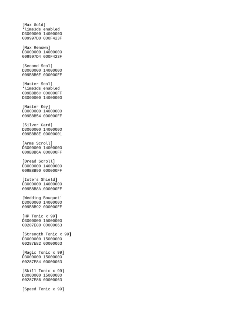 [SELECT+DOWN Stats Items x99]