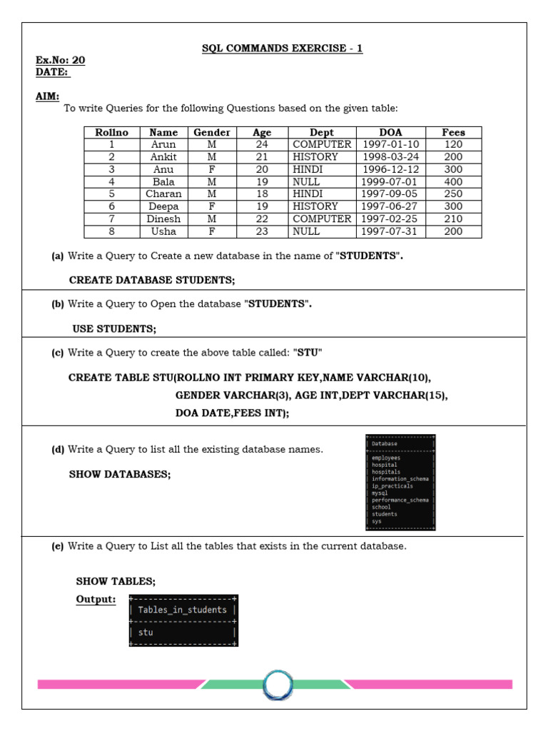 SQL COMMANDS EXERCISE - 1