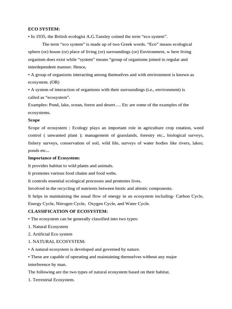 • In 1935, the British ecologist A.G.Tansley coined the term “eco system”.