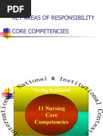 Gets involved in professional organizations and civic activities Indicators: Participates actively in professional, social, civic and religious activities Maintain membership to professional organizations Support activities related to nursing and health issues CORE COMPETENCY 4 Projects a professional image of nurse Indicators: Demonstrate good manners and right conduct at all times. Dresses appropriately. Demonstrates congruence of words and actions. Behaves appropriately at all times. CORE COMPETENCY 5 Possesses positive attitude towards change and criticism Indicators: Listens to suggestions and recommendations. Tries new strategies or approaches. Adapts to changes willingly. CORE COMPETENCY 6 Performs function according to professional standards Indicators: Assesses own performance against standards of practice. Sets attainable objectives to enhance nursing knowledge and skills. Explains current nursing practices, when situations call for it.