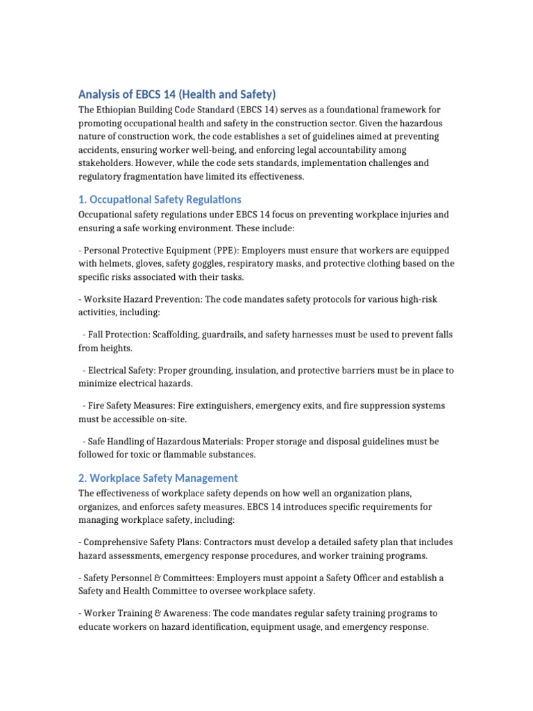 Analysis of EBCS 14 (Health and Safety)