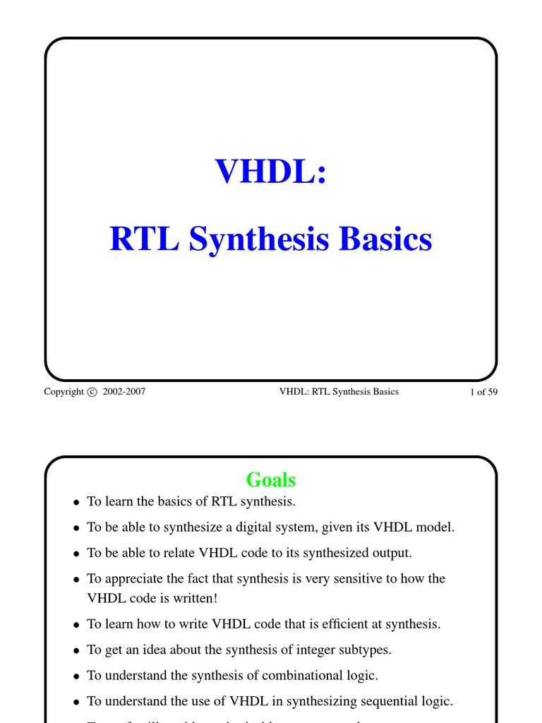 Copyright c 2002-2007 VHDL: RTL Synthesis Basics 2 of 59