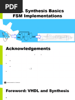 Synthesis is an automatic method of converting a higher level of abstraction (RTL) to a lower level of abstraction (gate level netlists). Synthesis produces technology-specic implementation from technology-independent VHDL description. Not all VHDL can be used for synthesis. There are the VHDL subset for synthesis and synthesis style description. Synthesis is very sensitive to how the VHDL code is written! Gate level netlists Technology libraries are optimized for RTL The area, speed, description synthesis power, or process testability. Design constraints