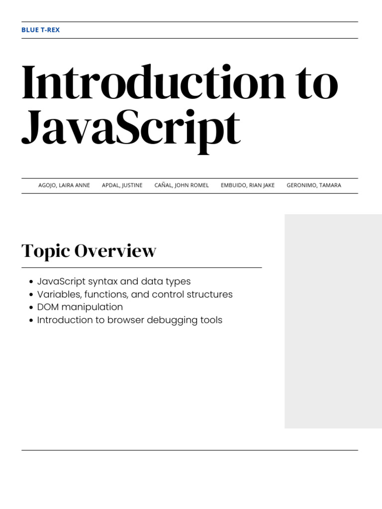 AGOJO, LAIRA ANNE APDAL, JUSTINE CAÑAL, JOHN ROMEL EMBUIDO, RIAN JAKE GERONIMO, TAMARA