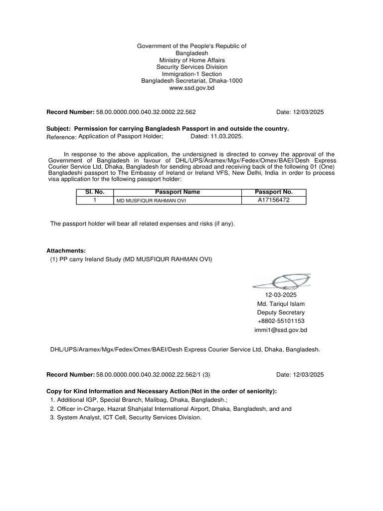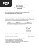 Subject: Permission for carrying Bangladesh Passport in and outside the country.