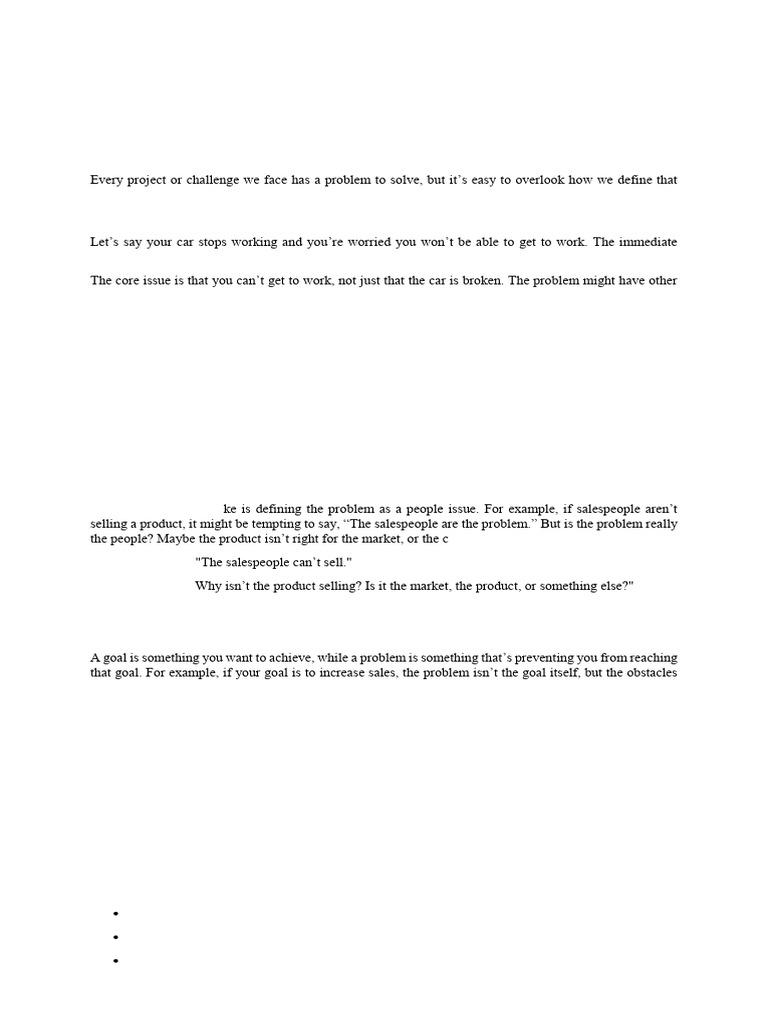 problem. How we define a problem can affect how we solve it, so it's important to get it right from the start.
