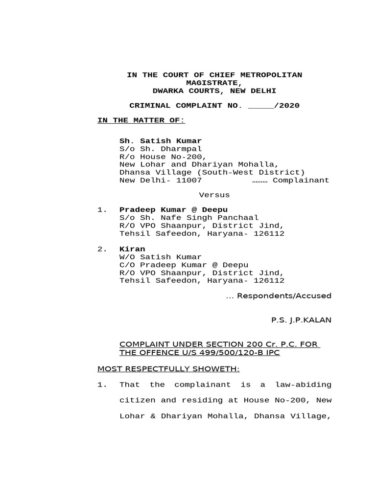 COMPLAINT UNDER SECTION 200 Cr. P.C. FOR