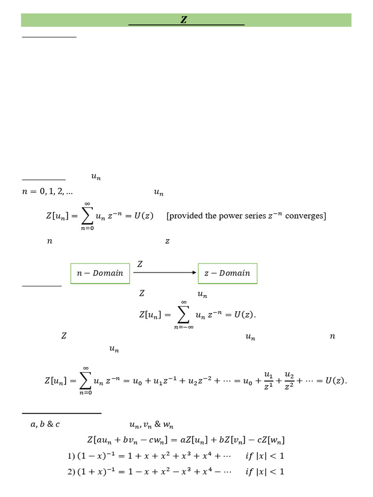 2. The 𝑍-transform does not converge for all sequences 𝑢𝑛 or for all values of 𝑛.