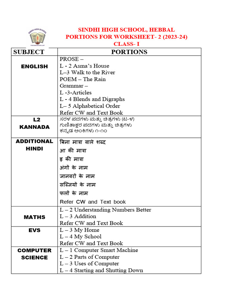 PORTIONS FOR WORKSHEET- 2 (2023-24)