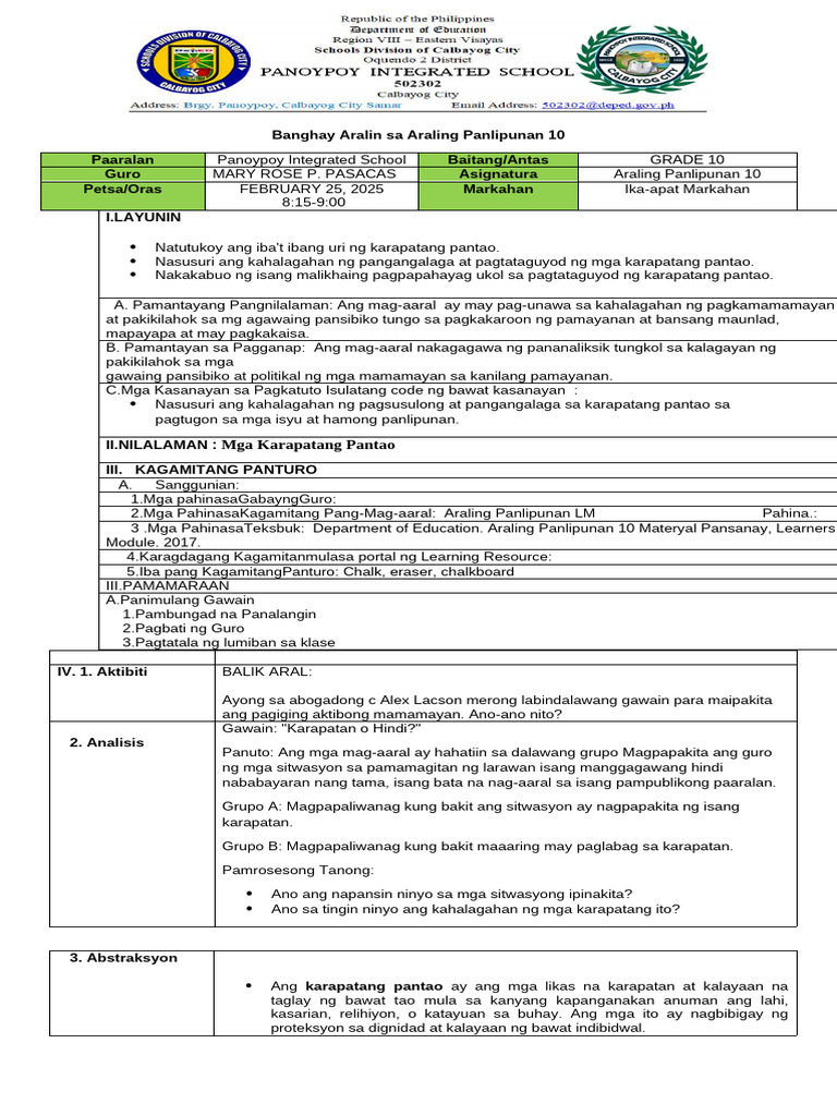 Banghay Aralin sa Araling Panlipunan 10