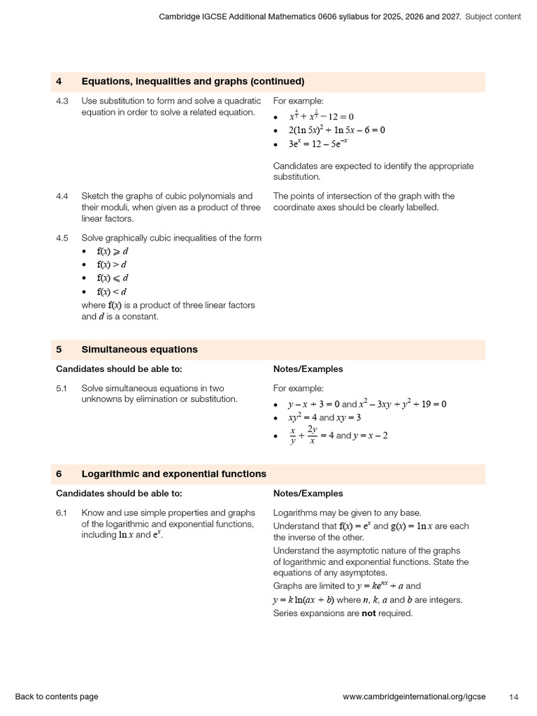 Cambridge IGCSE Additional Mathematics 0606 syllabus for 2025, 2026 and 2027. Subject content