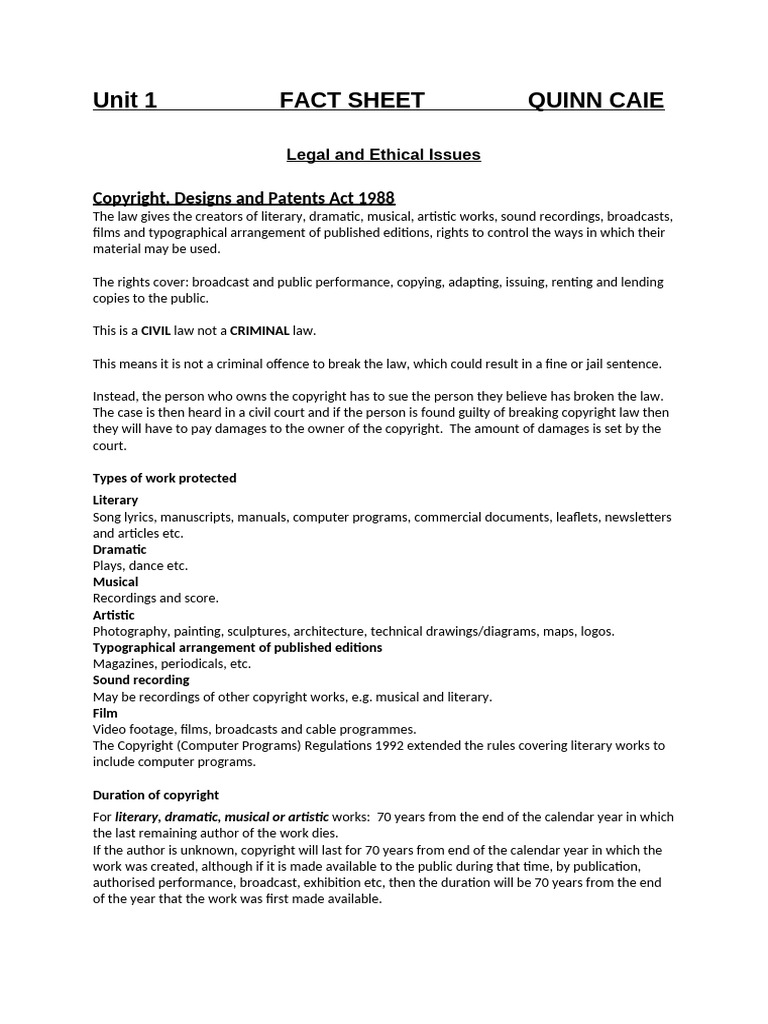 Application: The purpose of the Copyright, Designs and Patents Act is to give power to creators of