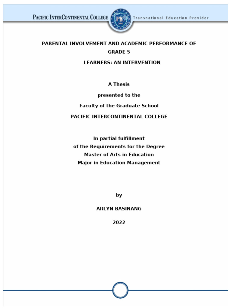 This thesis entitled “PARENTAL INVOLVEMENT AND ACADEMIC