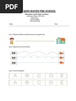 This document is an examination paper for Class 1st students at Little Sunshine Kids Play School. It is for the subject Environmental Studies (E.V.S) and has a duration of 3 hours with a maximum mark of 50. The document includes a space for the student's name.