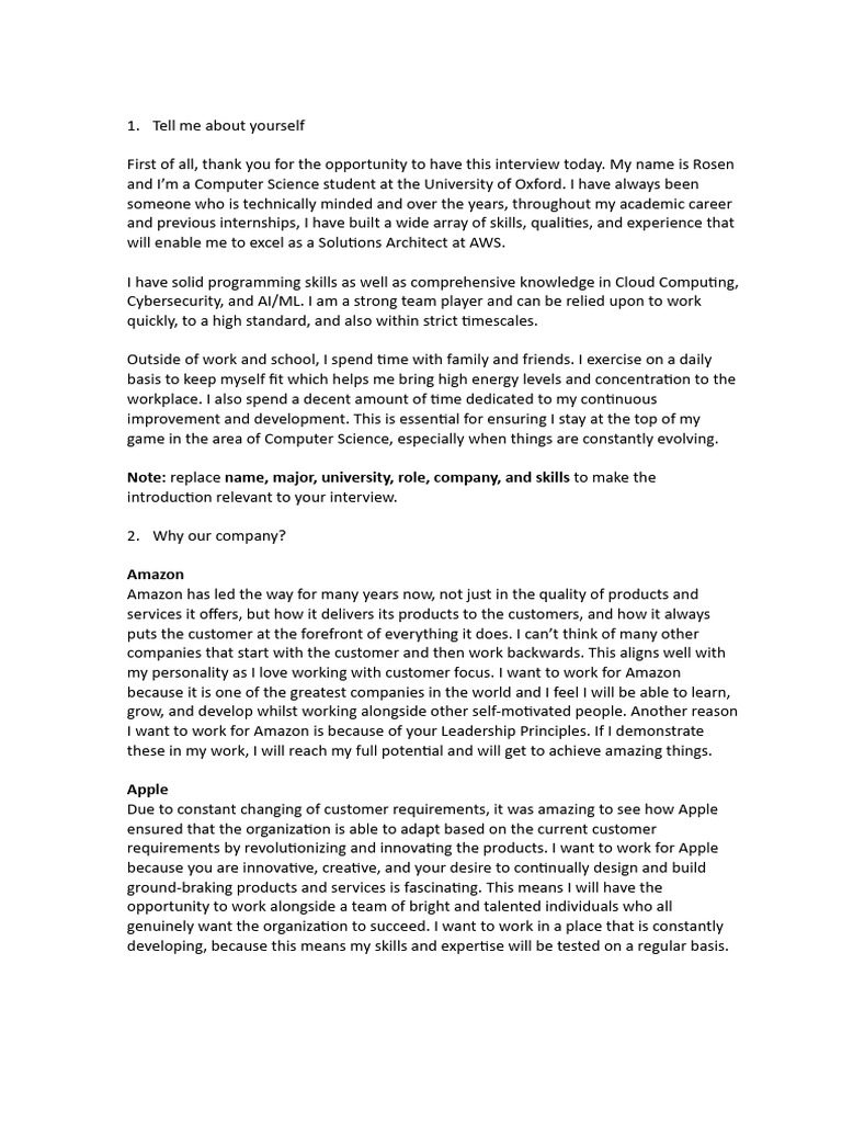 introducGon relevant to your interview.