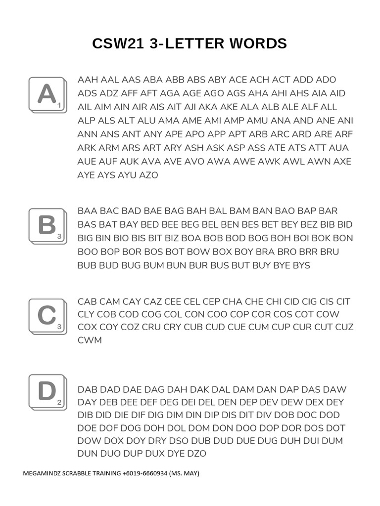 CSW21 3-LETTER WORDS