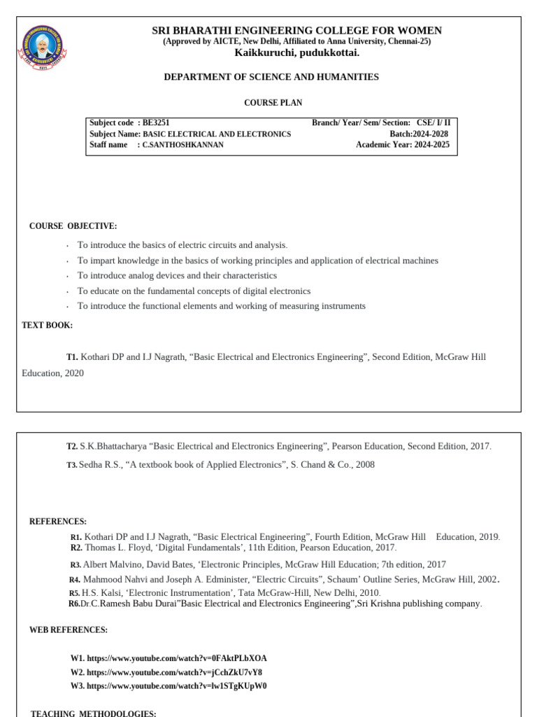 T2. [Link] “Basic Electrical and Electronics Engineering”, Pearson Education, Second Edition, 2017.