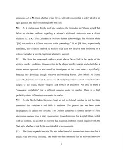 and its progeny. 373 US 83 (1963). A Brady violation was analyzed by the North Dakota