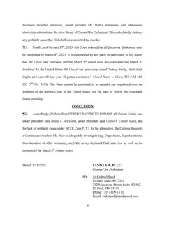 Nichole Erin Rice's defense is seeking to dismiss charges against her based on alleged violations of Brady v. Maryland and Giglio v. United States, claiming the prosecution failed to disclose exculpatory evidence that implicates an alternative suspect, Devin Hall. The defense argues that the state suppressed evidence that could significantly impact the trial's outcome, including a report that raises concerns about the credibility of the state's primary case agent. The motion emphasizes that the undisclosed evidence meets the criteria for a Brady violation, as it was not available to the defense prior to trial and could alter the perception of probable cause against Rice.