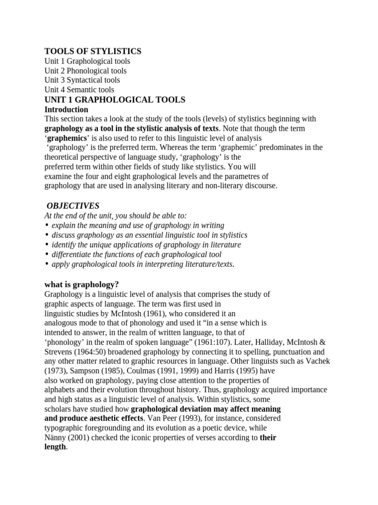 • discuss graphology as an essential linguistic tool in stylistics