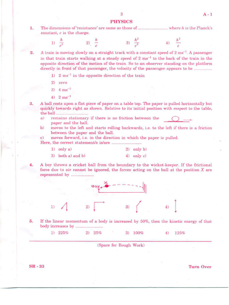 3. A ball rests upon a flat piece of paper on a table top. The paper is pulled horizontally but