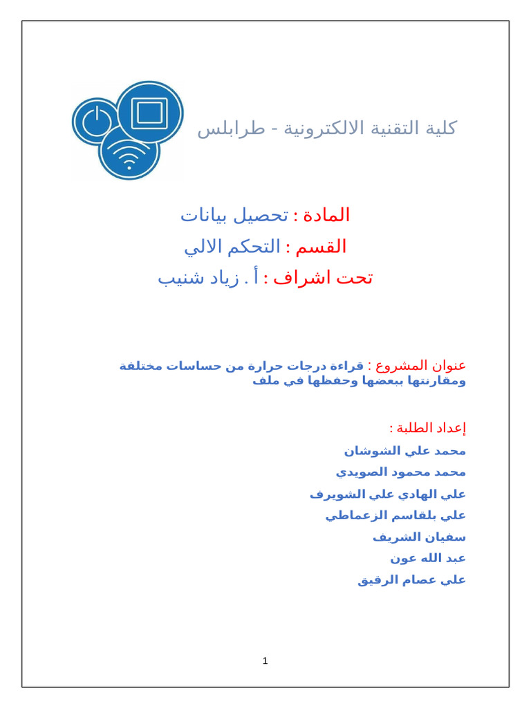 يهدف هذا المشروع إلى تصميم وتنفيذ نظام يستخدم عدة حساسات لقياس درجات الحرارة