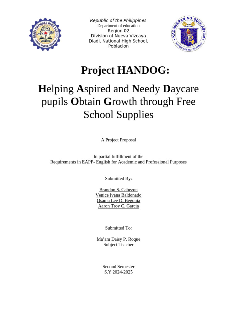 Project HANDOG is a community-driven initiative aimed at addressing the need for school