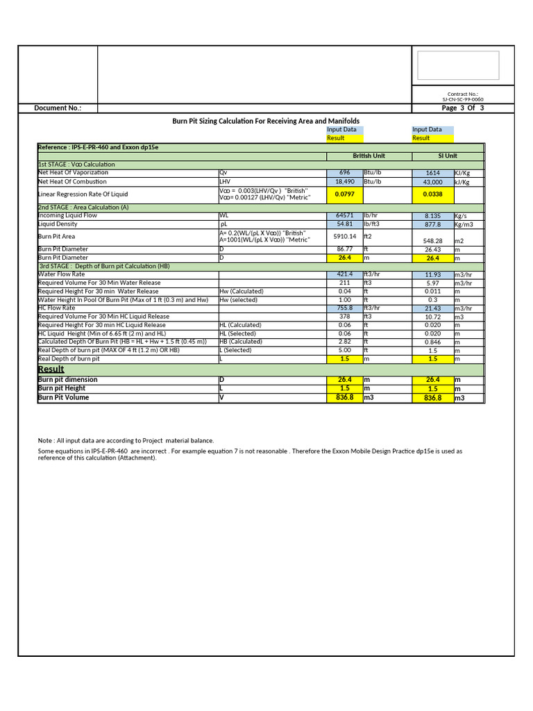 Burn Pit Sizing Calculation For Receiving Area and Manifolds