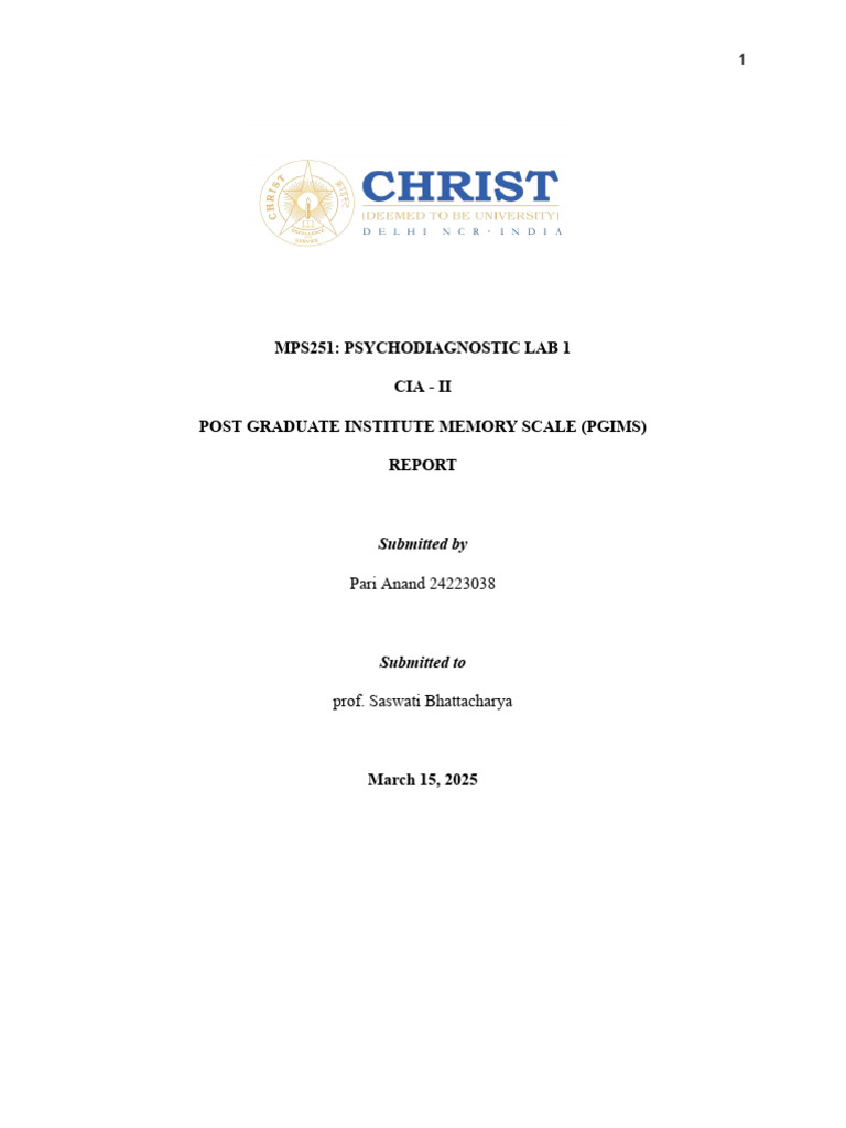 POST GRADUATE INSTITUTE MEMORY SCALE (PGIMS)