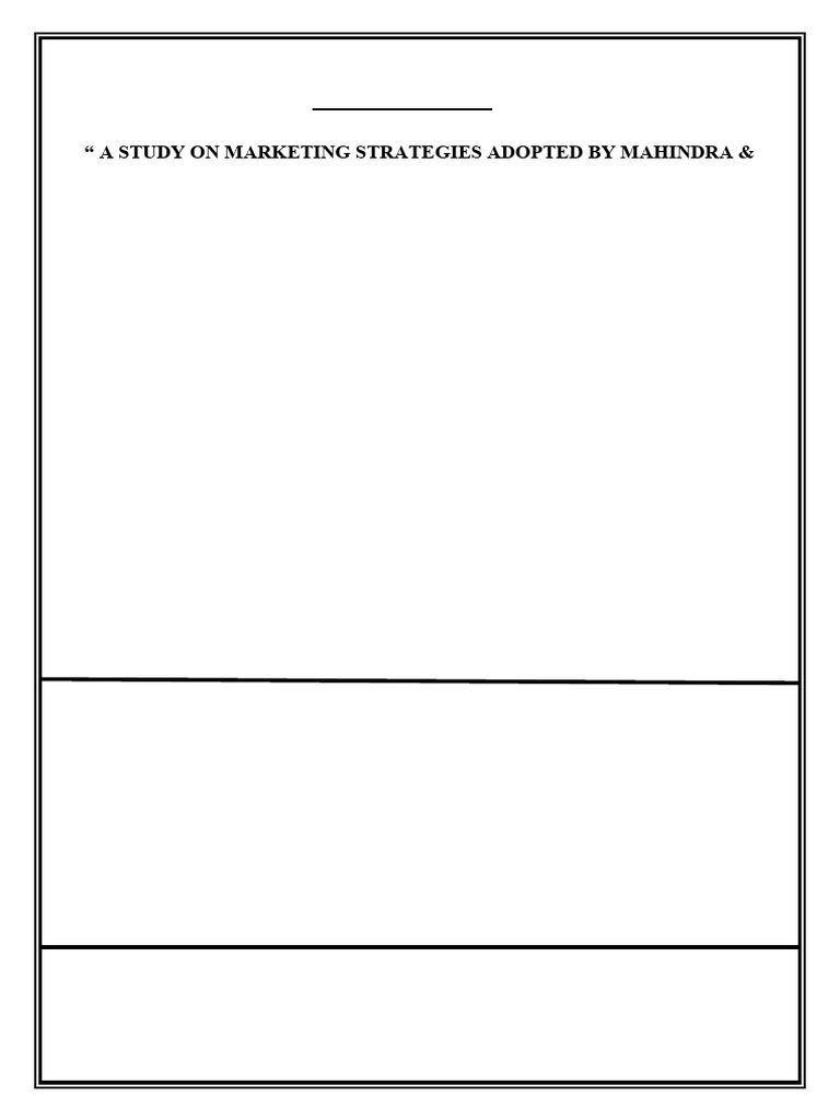 “ A STUDY ON MARKETING STRATEGIES ADOPTED BY MAHINDRA &