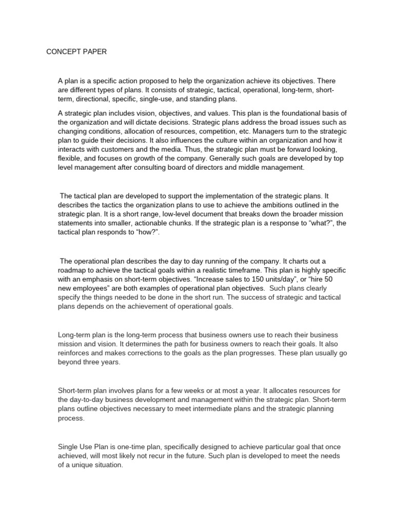 are different types of plans. It consists of strategic, tactical, operational, long-term, short-