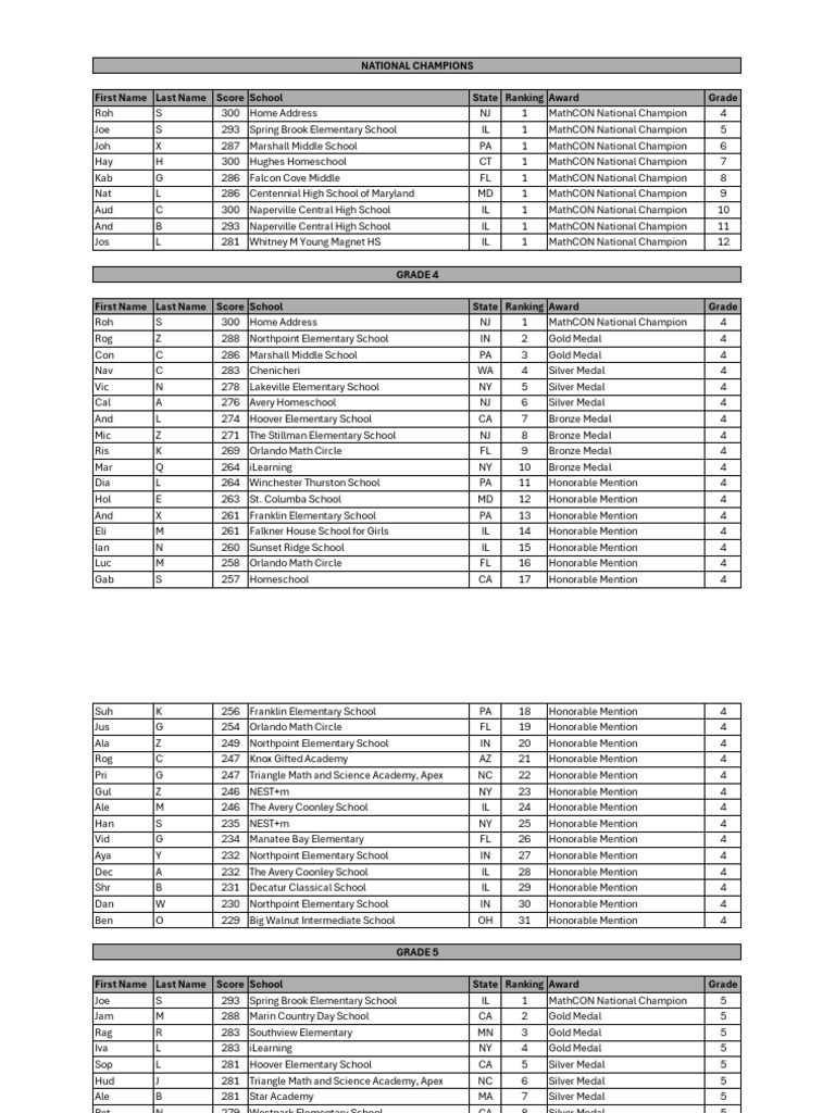 Joe S 293 Spring Brook Elementary School IL 1 MathCON National Champion 5