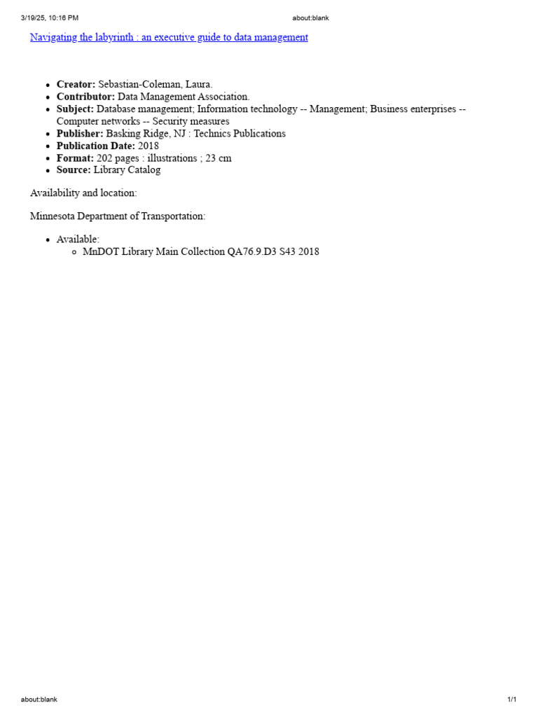 MnDOT Library Main Collection QA76.9.D3 S43 2018