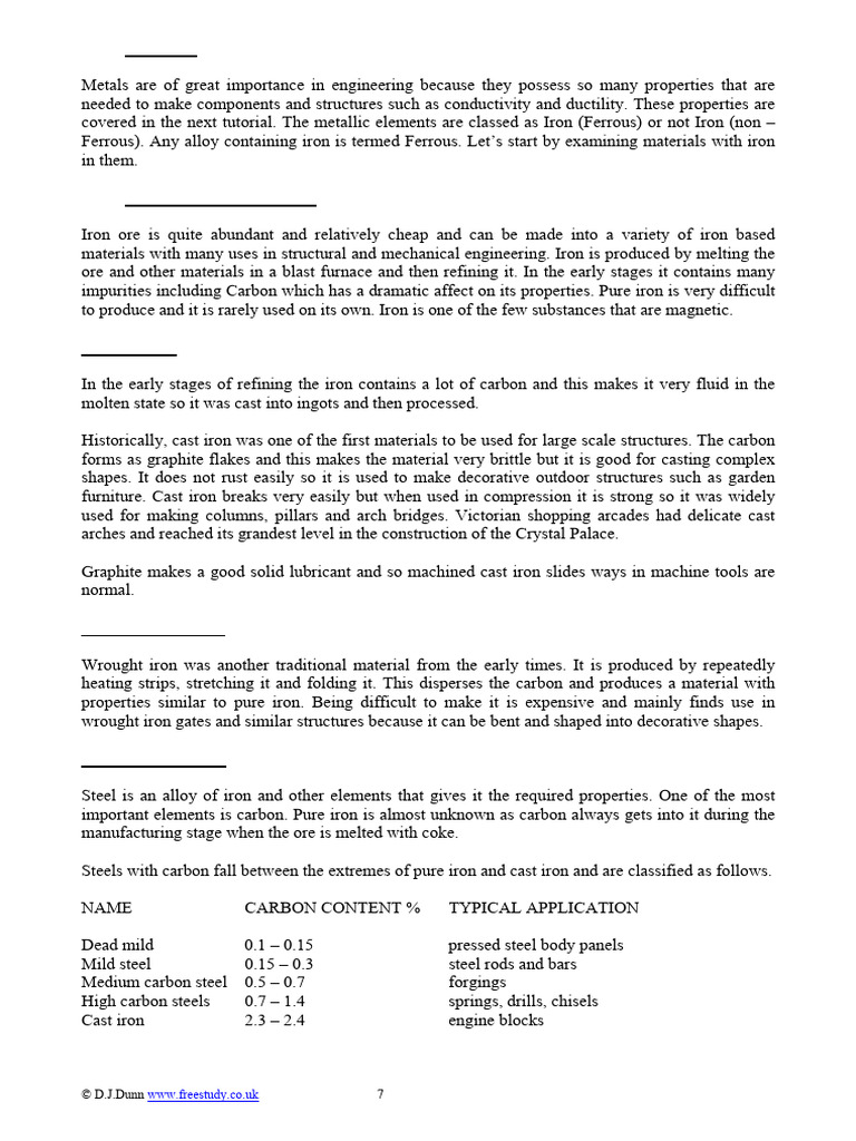 covered in the next tutorial. The metallic elements are classed as Iron (Ferrous) or not Iron (non –