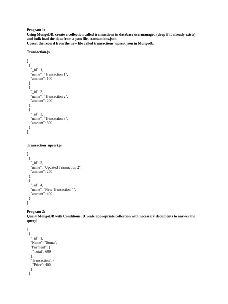 Using MongoDB, create a collection called transactions in database usermanaged (drop if it already exists)